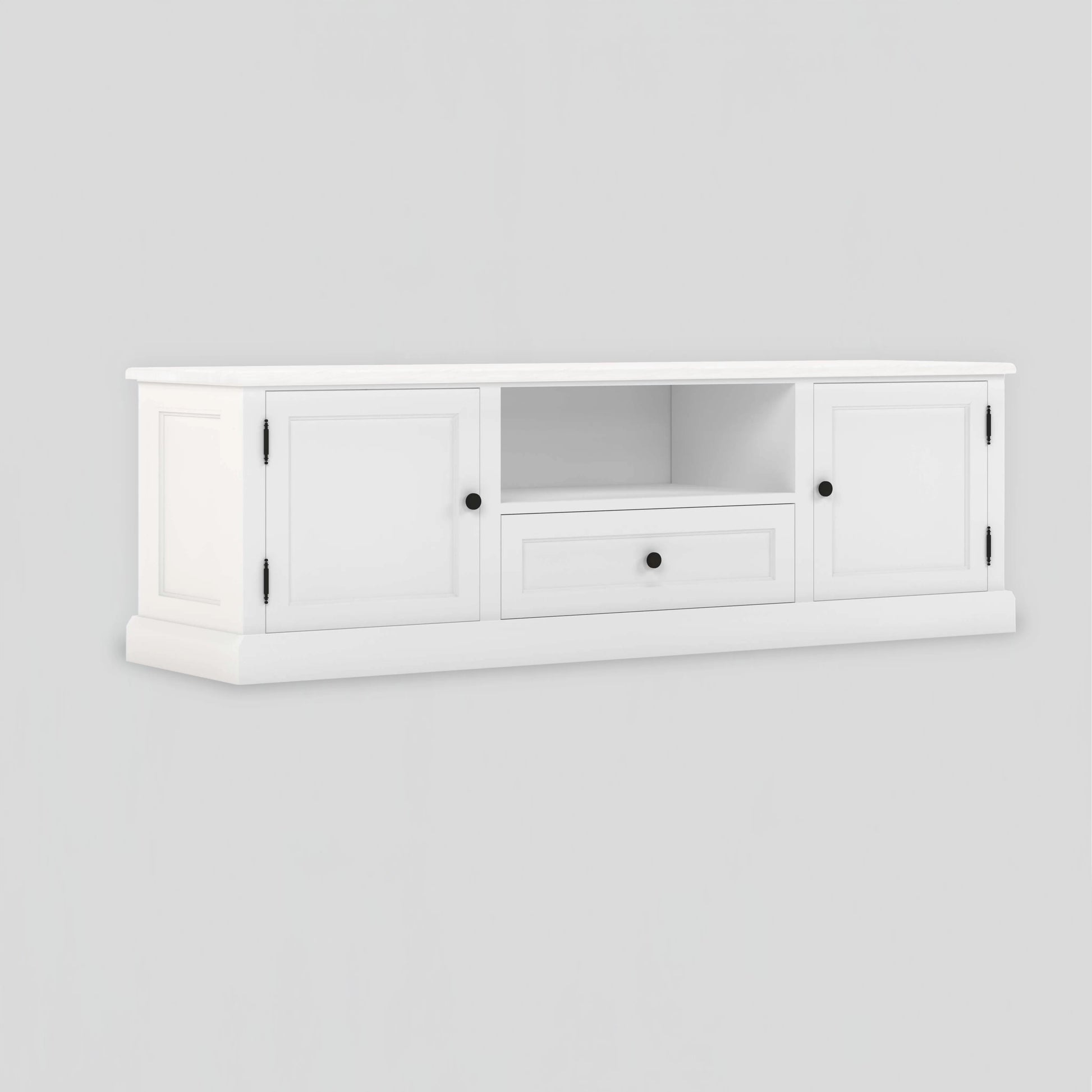 The Bellevue TV Unit embodies the timeless elegance of classic Hampton design. With its crisp white finish, panelled cabinetry, and refined black hardware, it offers a perfect balance of charm and functionality. Designed with generous storage and a graceful silhouette, Bellevue brings understated sophistication to any living space.