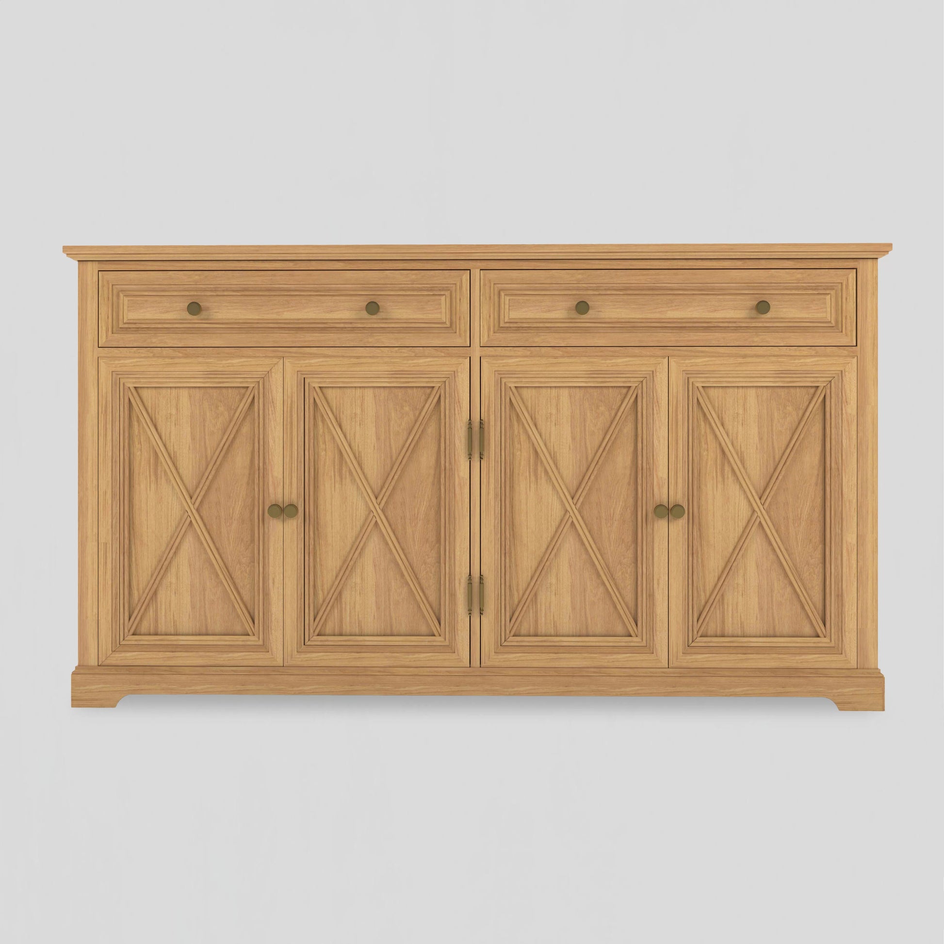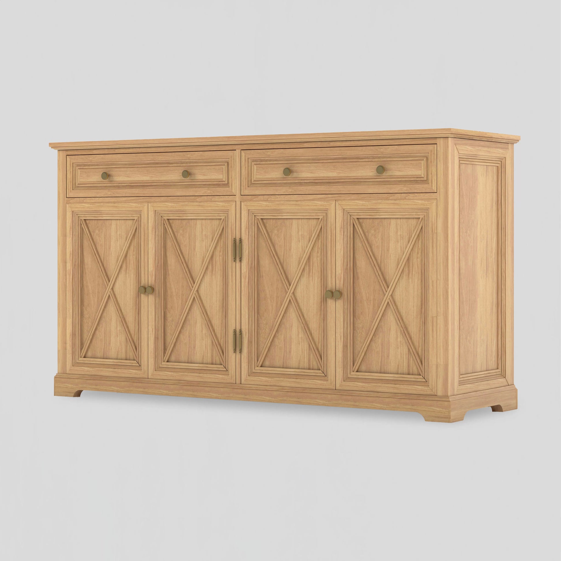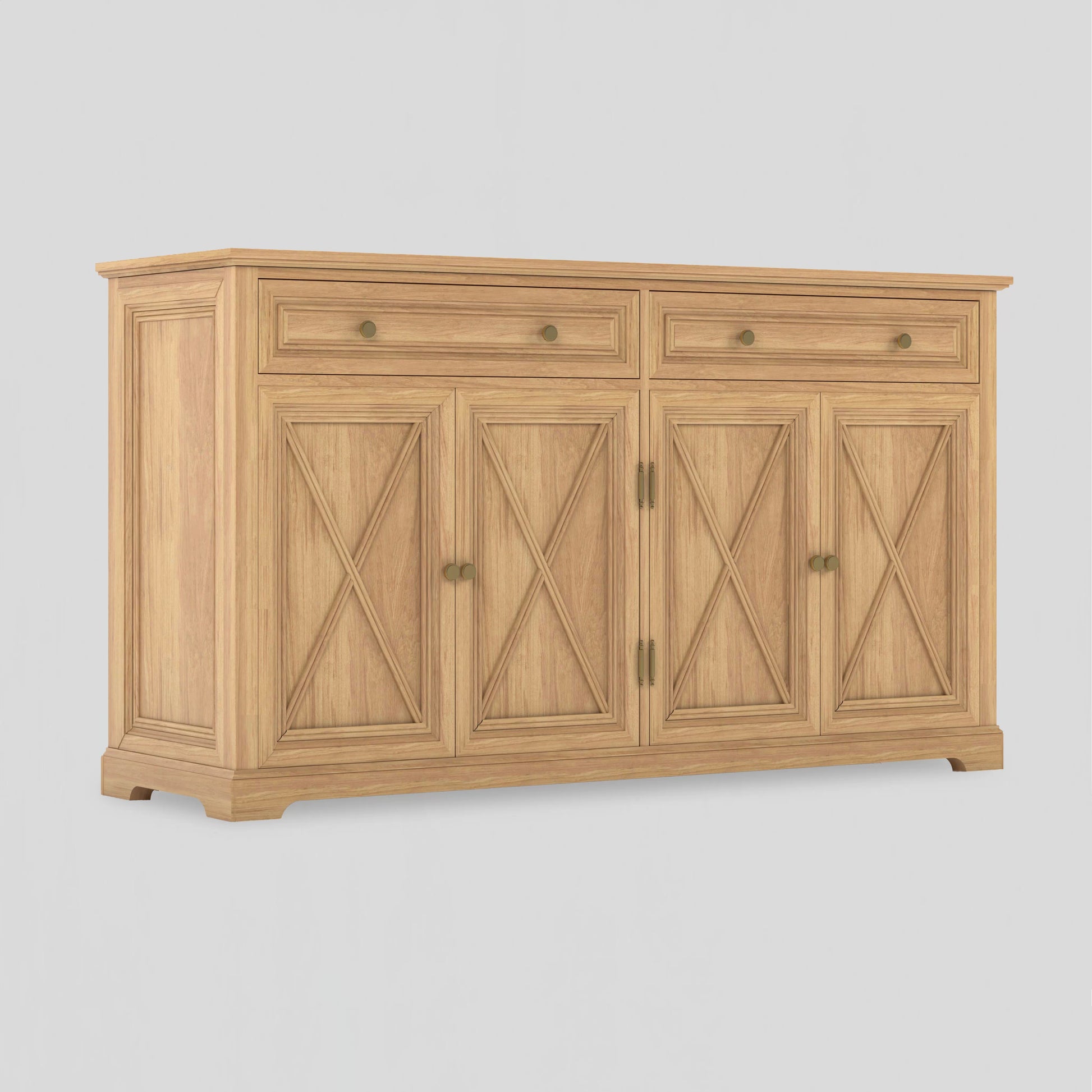 The Coastal Retreat Sideboard embodies timeless craftsmanship with a warm, natural finish that evokes the serenity of refined seaside living. Its signature cross-panel doors and elegant silhouette reflect classic Hampton detailing, while the soft brass accents add a contemporary touch. A statement of relaxed sophistication, Coastal Retreat offers generous storage and enduring beauty for any elegant home interior.