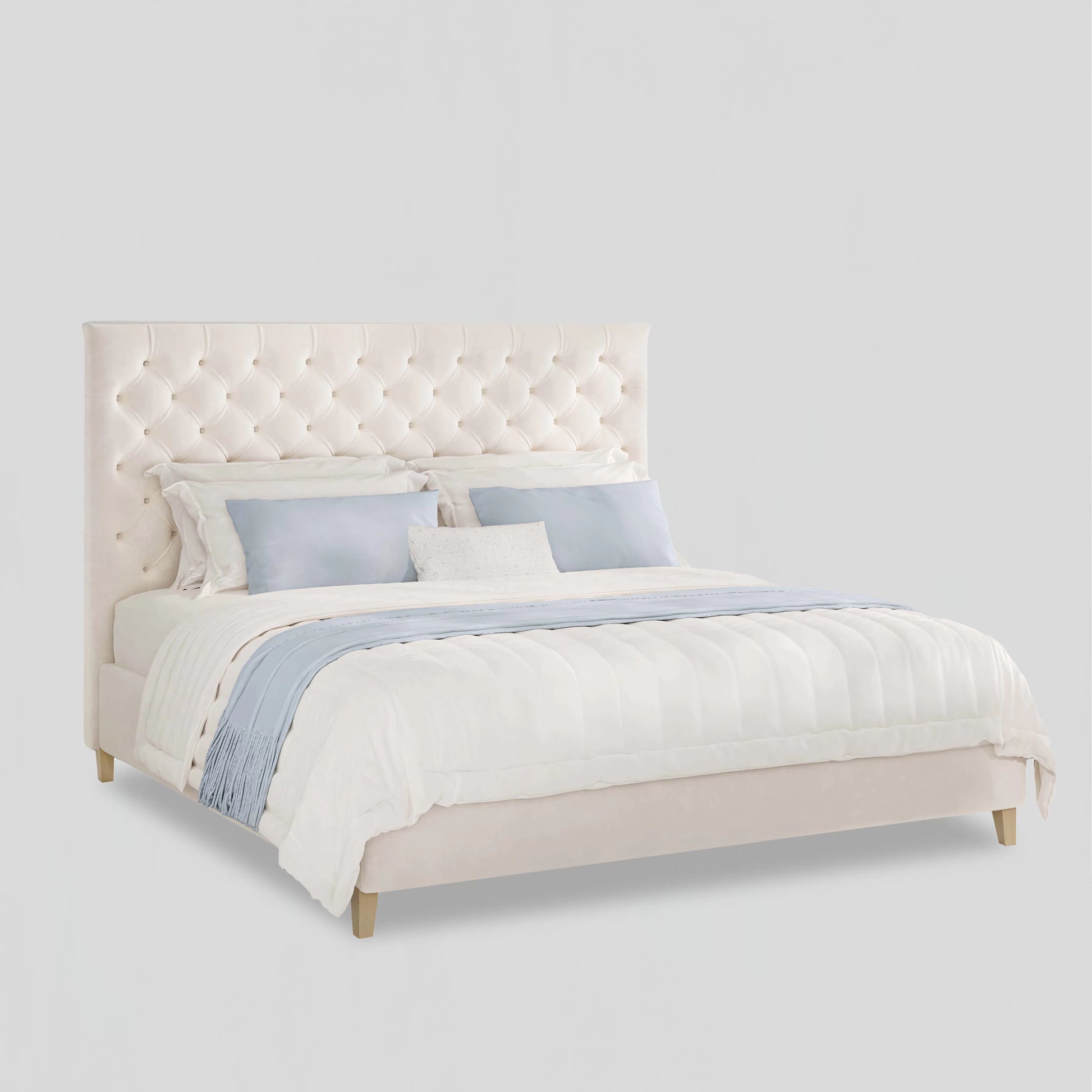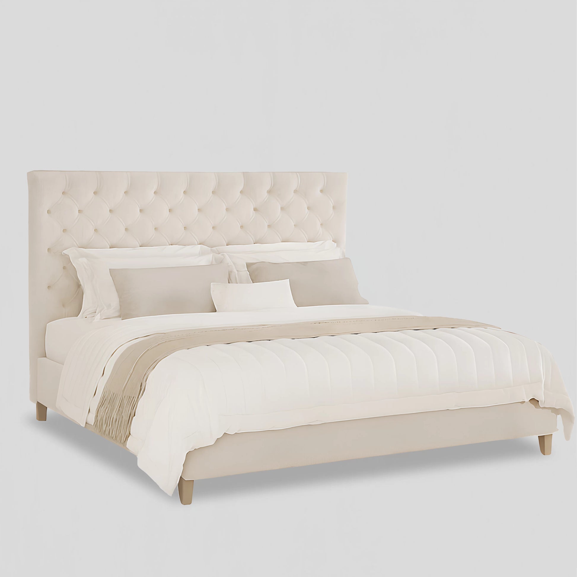 The Harbour Bed brings refined elegance to the bedroom with its fully upholstered silhouette and luxurious tufted headboard. Designed for comfort, sophistication, and everyday durability, this bed blends seamlessly with Hamptons, modern classic, and coastal-inspired interiors.
