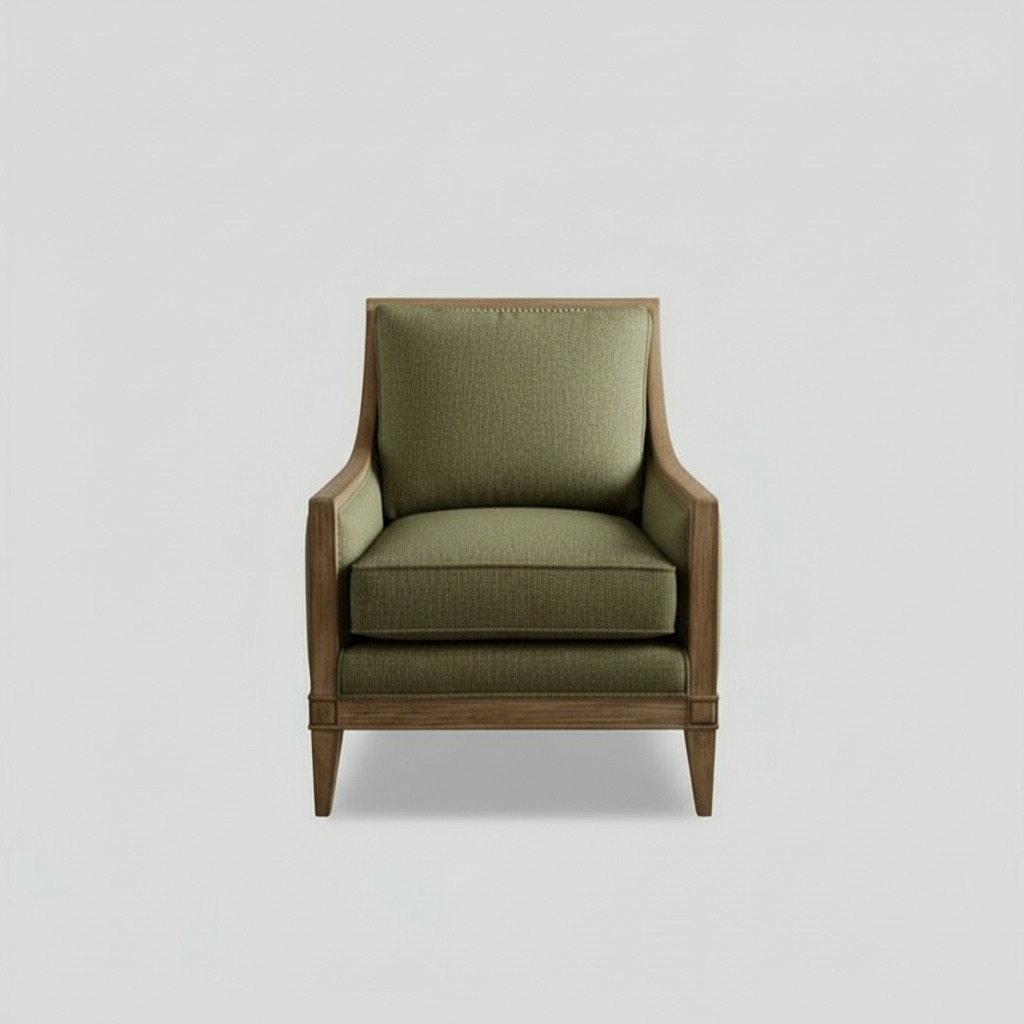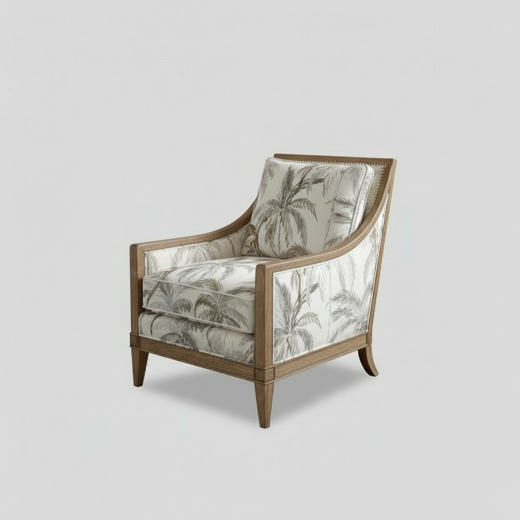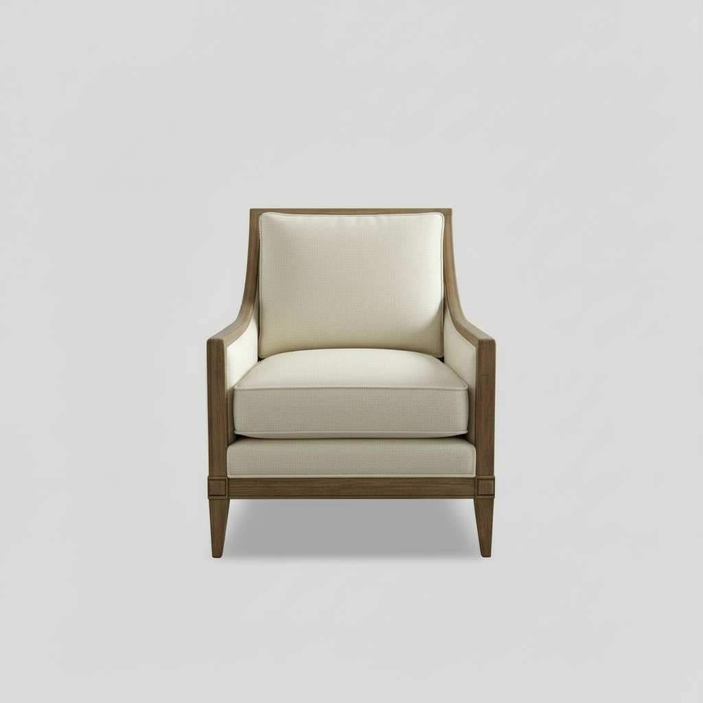 The Harrington armchair is upholstered in luxury commercial-grade fabrics from Warwick — exceptionally soft, durable, and designed for everyday family living. The frame is crafted from hardwood for lasting support, with legs available in French Oak finish.