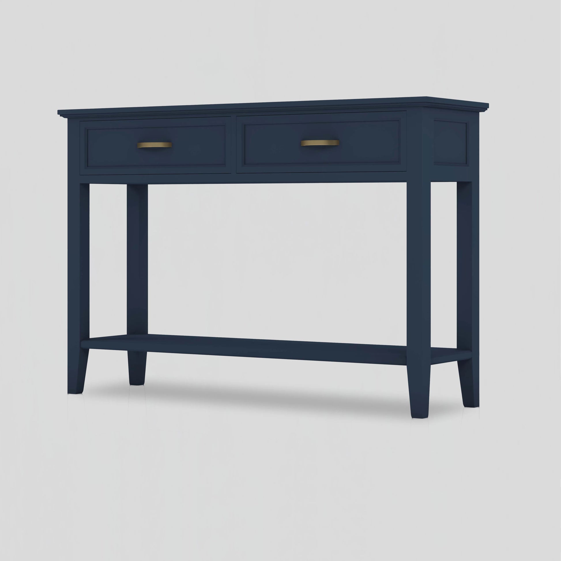 The Seabrook Hall Table embodies the grace of classic Hampton design — timeless, elegant, and beautifully balanced. Finished in a rich navy hue with brushed brass handles, it brings sophistication and warmth to any entryway or living space. A perfect blend of refined style and enduring craftsmanship.