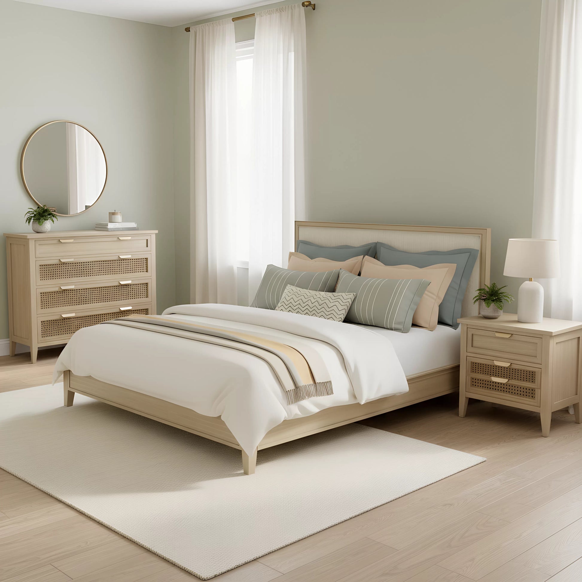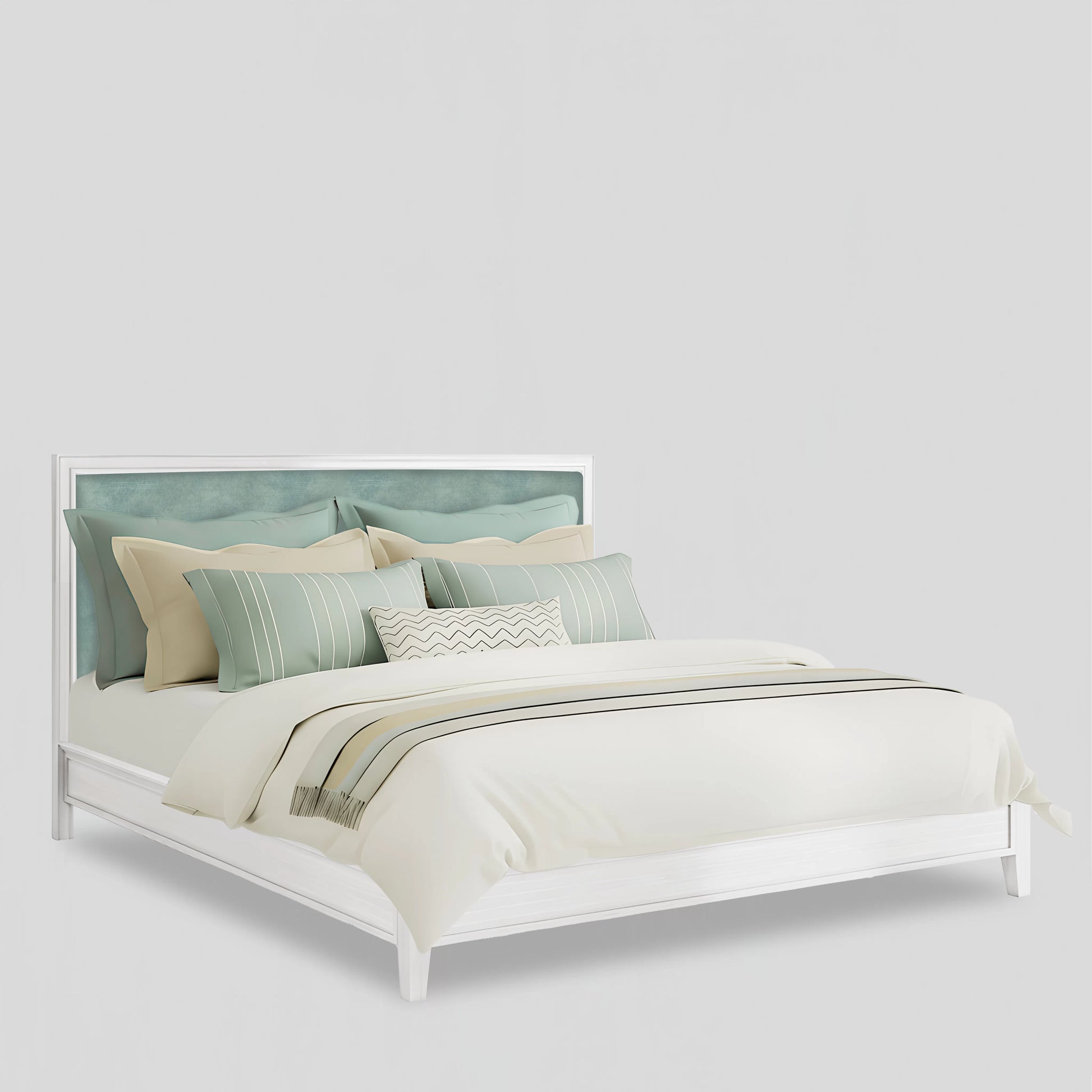 The White Heaven Bed blends coastal elegance with refined upholstery options, offering a soft, luxurious finish that complements its clean timber frame. Available in two paint finishes — White and Sand Dune — and three premium fabric choices, each selected for durability, comfort, and timeless style.