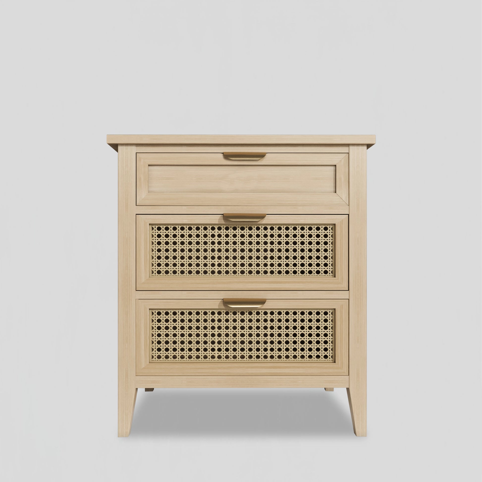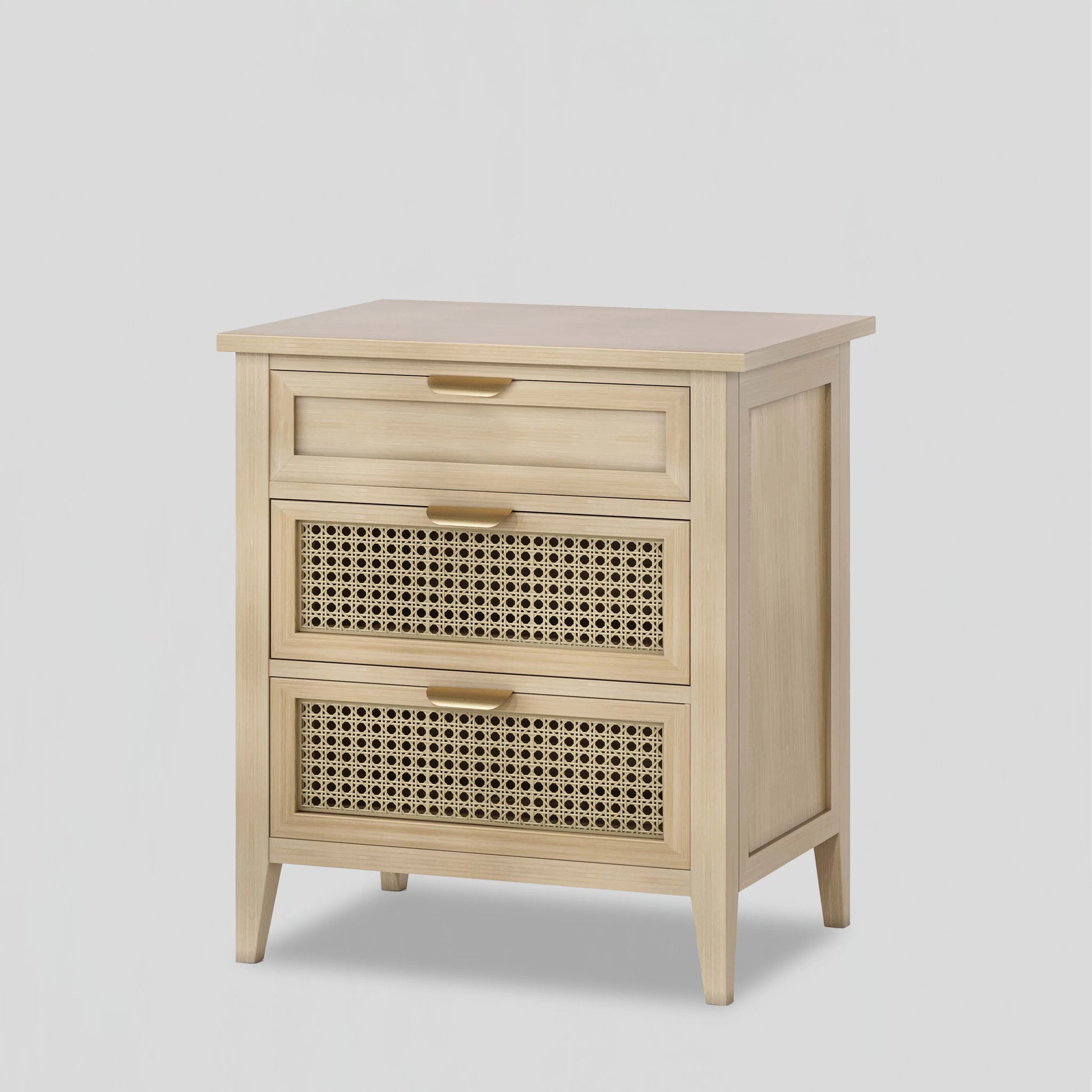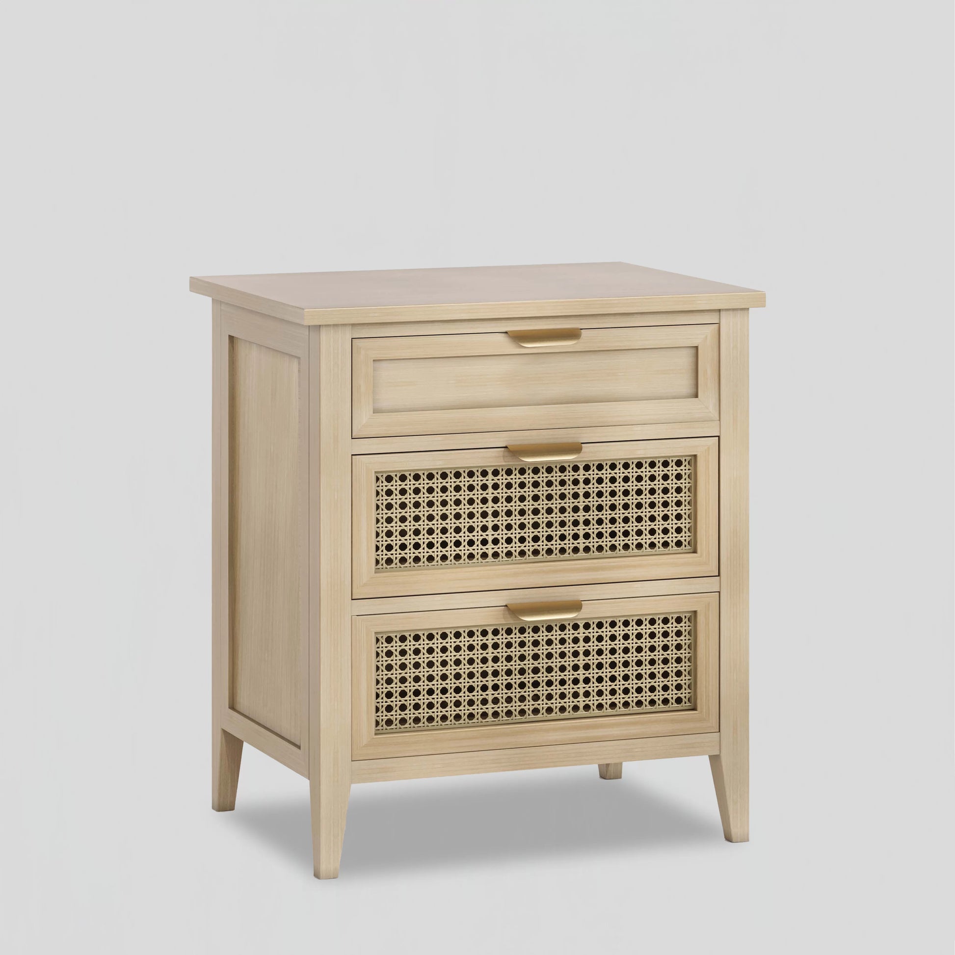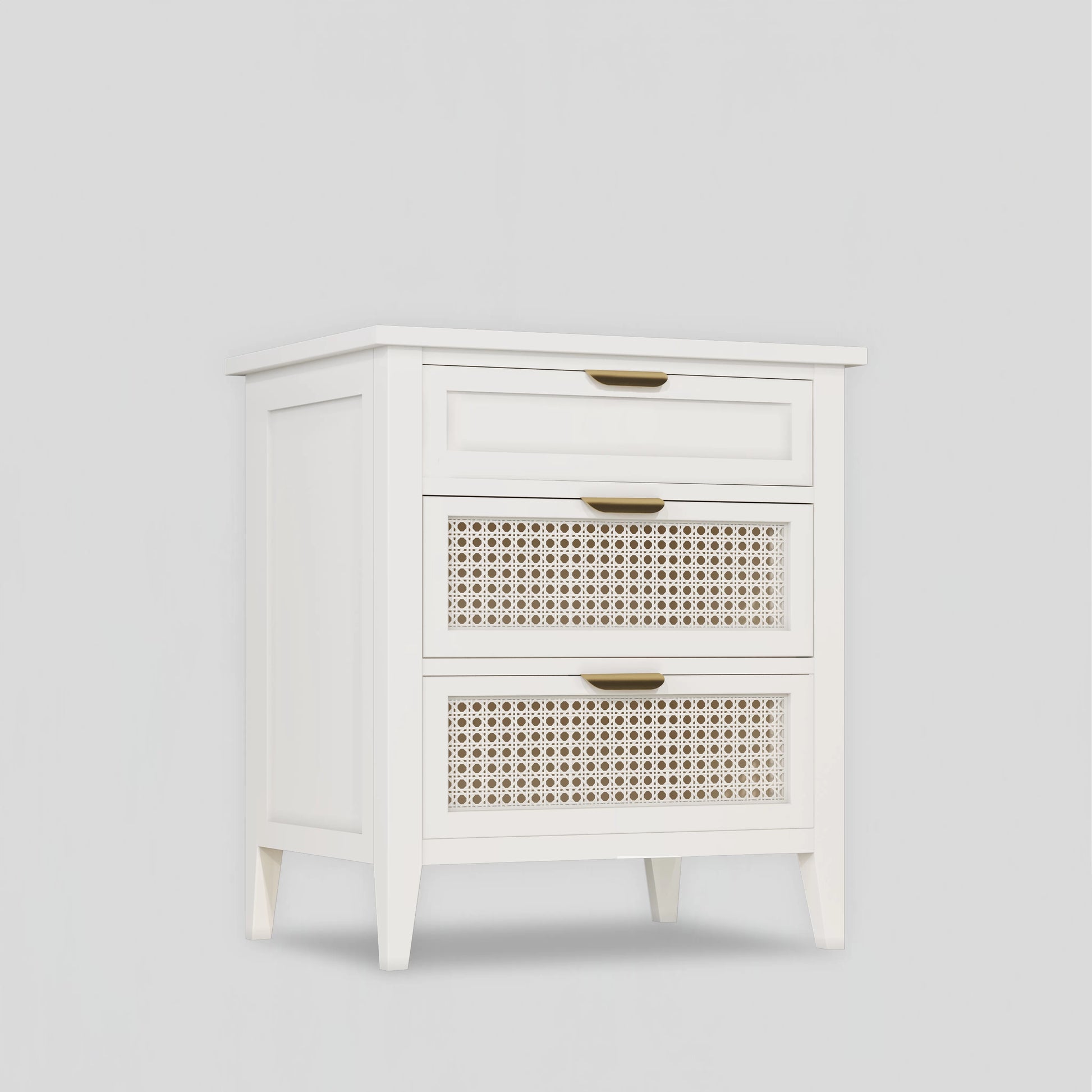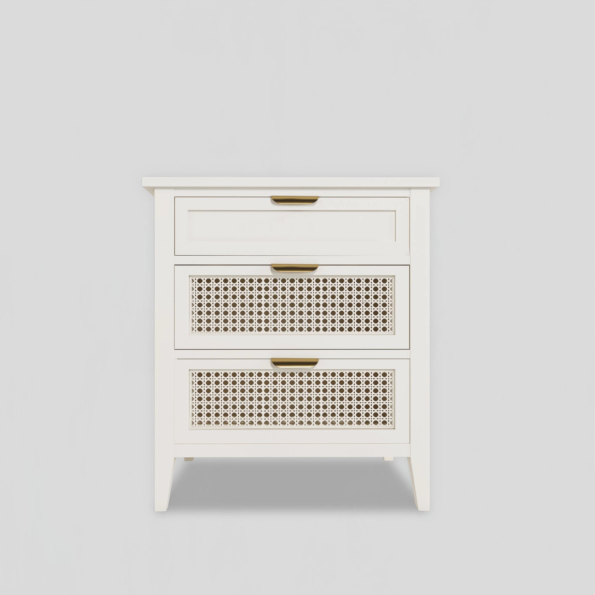 The White Heaven Bedside brings a fresh sense of serenity to the bedroom. Featuring a crisp white finish paired with intricately woven cane-front drawers and brushed brass handles, it captures the essence of relaxed luxury. Elegant yet functional, White Heaven offers timeless style and versatile storage — a perfect balance of beauty and practicality.